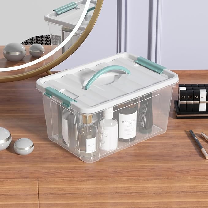 Ramddy 6-Pack 14 Quart Plastic Storage Bin with Handle, Clear Latching Container Box