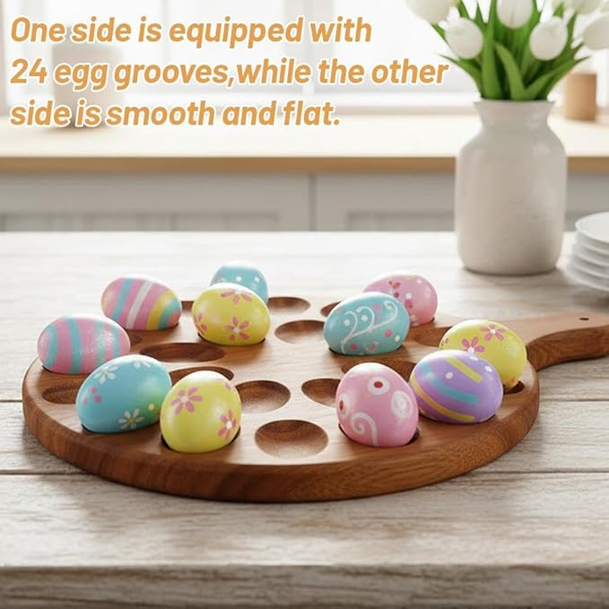 - 2-in-1 Versatile Serving Board: Doubles as a deviled egg platter and multi-use serving tray (charcuterie board, pizza tray, cheese plate, or egg storage holder). The reversible design combines style and functionality, making it perfect for Easter brunch, Thanksgiving dinners, holiday potlucks, parties, picnics, or family gatherings.