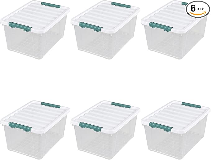 6 Pack 35 Quarts Large Storage Bin with Lid, Clear Plastic Latching Boxes